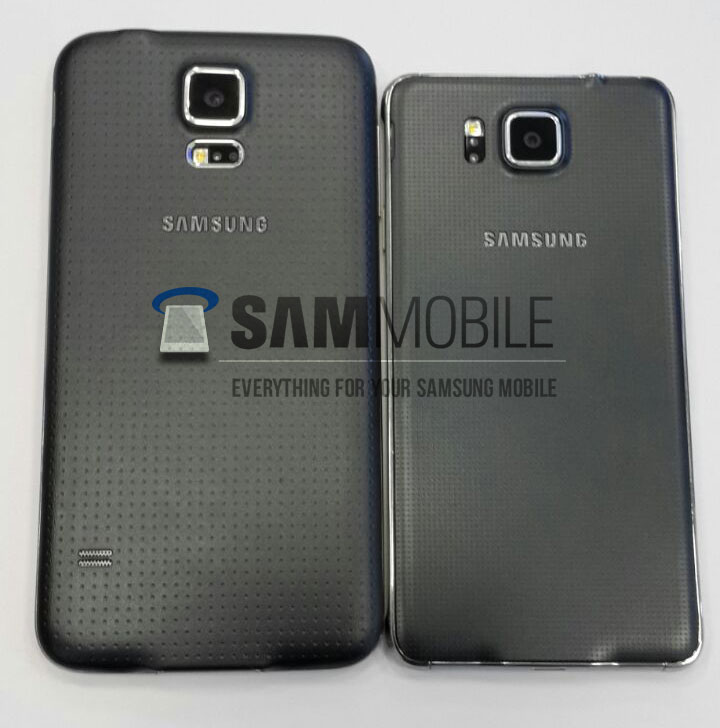 Now, there are two sources that we’ve gathered the information from for this one device, one is the LTE-A edition, while the other one is the powered off one (as you can see in the picture, the one with all the markings). Now, as we can see, although both of these phones are metal trim, they also bear the old plastic backplate. Also, one of the source mentions that this device has the same screen as the Galaxy S3, so presumably, it is a 720p display. As you can see in one of the pictures compare the handset with the Galaxy S5 suggests a 4.7-inch display. Some of the new changes-beside the metal trim- is the position of the flash and heart rate monitor, from bellow the camera to its right side. One thing worth noticing is that in the picture that reveals the removable battery door, we see the absence of a Micro SD card slot, which means users will be stuck with 32 internal memory.