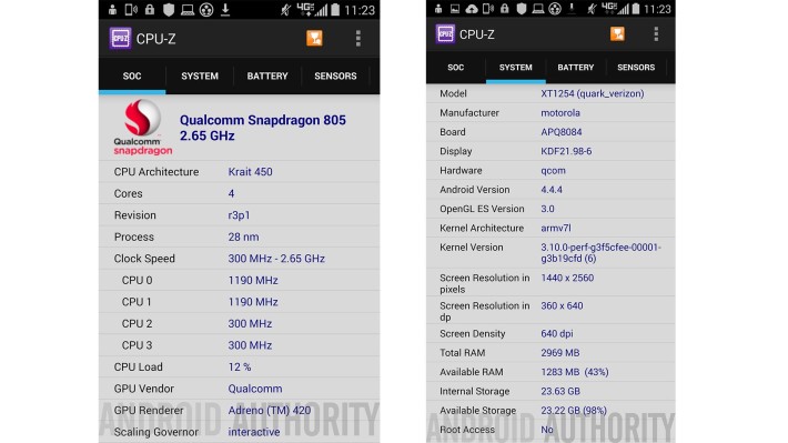A leak info screen shot of a Motorola device with the name of “Quark_Verizon” bears the model number XT1254. Now, from the Verizon part, I can safely assume that it is another Droid variant or the rumored Moto S that has been in the rumors for the pass few days, and it might be the most powerful phone for Motorola yet. According to this screen shot, the “Quark_Verizon” model will be featuring a Snapdragon 805 clocks at 2.65 GHz, an Adreno 420 GPU, 3GB of RAM, 32GB of internal storage. This is a huge improvement from the rumored Moto X+1 as far as we know.
