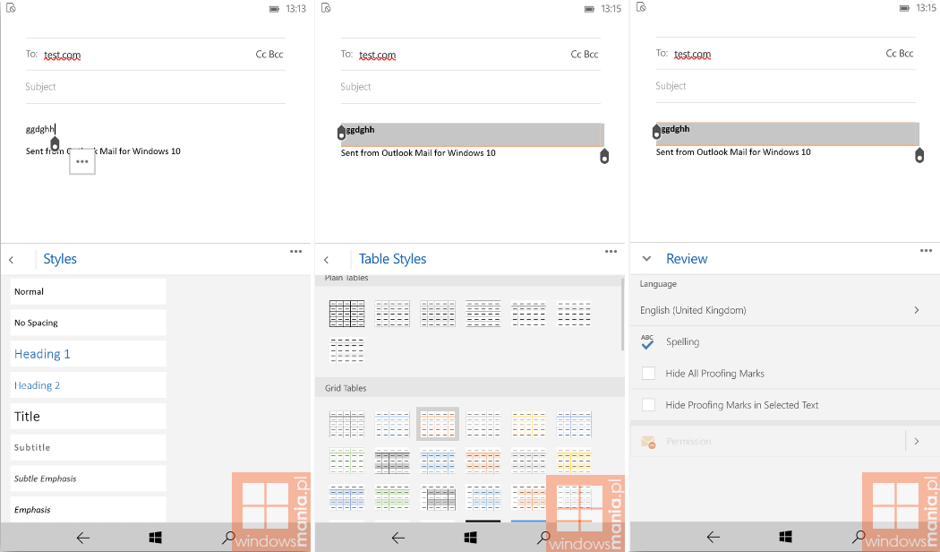 So, as you can see in the header image (by Windows Cenntral), We have a new task switcher in grid form, similar-but not identical-to what HTC’s Sense. We also have screen shots reveals changes to some of the setting menus, like the Date and Time and Messaging. Another interesting screenshot is from Choose An App card, which reveals that Windows 10 for smartphone will now name removable storage (like a MicroSD card) drive letter, similar to how Windows assigns a drive letter on the desktop. Lastly, we have screenshots of Outlook email with Word integration, all of which has been demonstrated by Joe Belfiore during the Windows 10 event back in February.